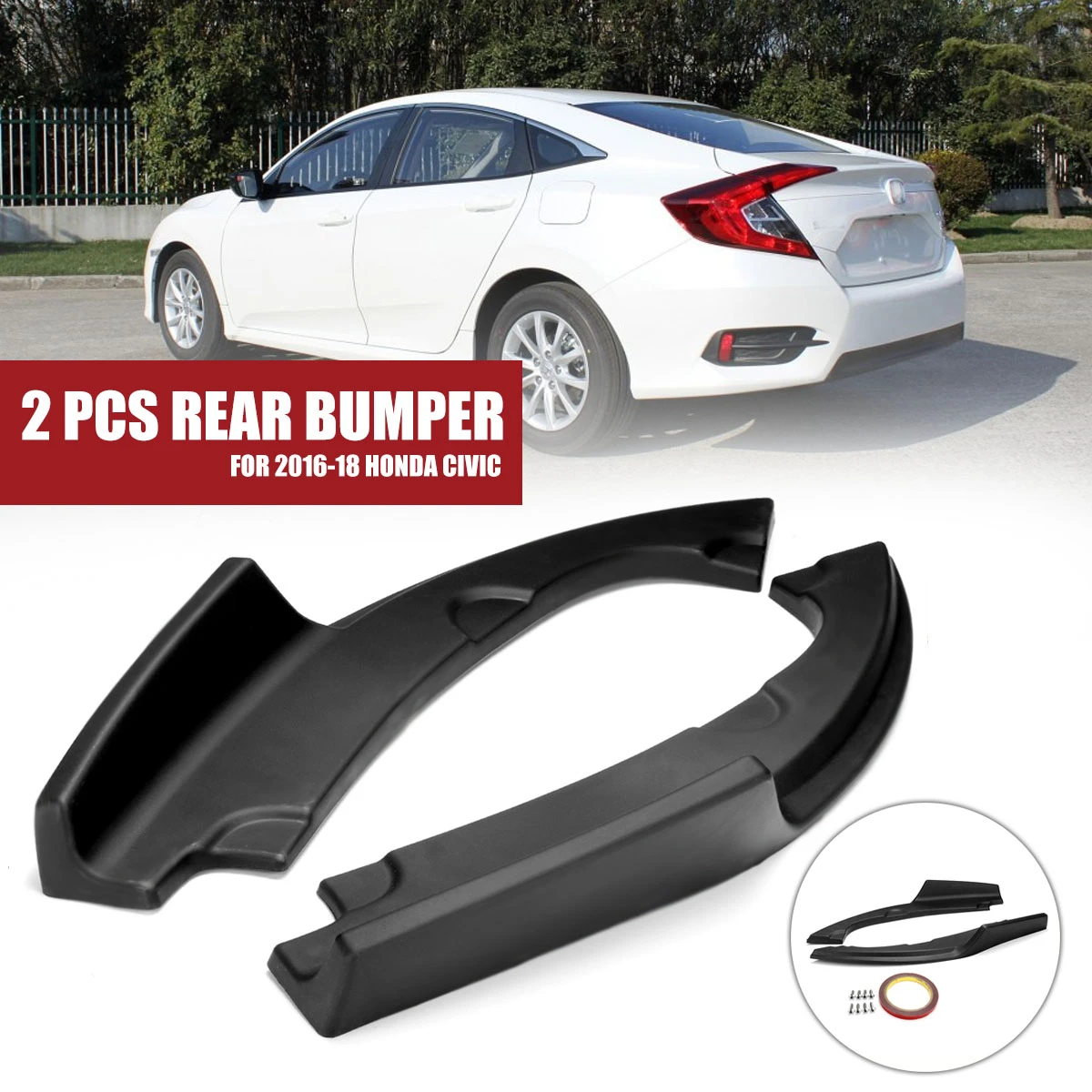 Show ImageA Pair Car Rear Bumper Lip Diffiuser Guard Lower Side Bumper Splitter Lip Apron Valance For Honda For Civic 2016 2017 2018 Bumpers Aliexpress