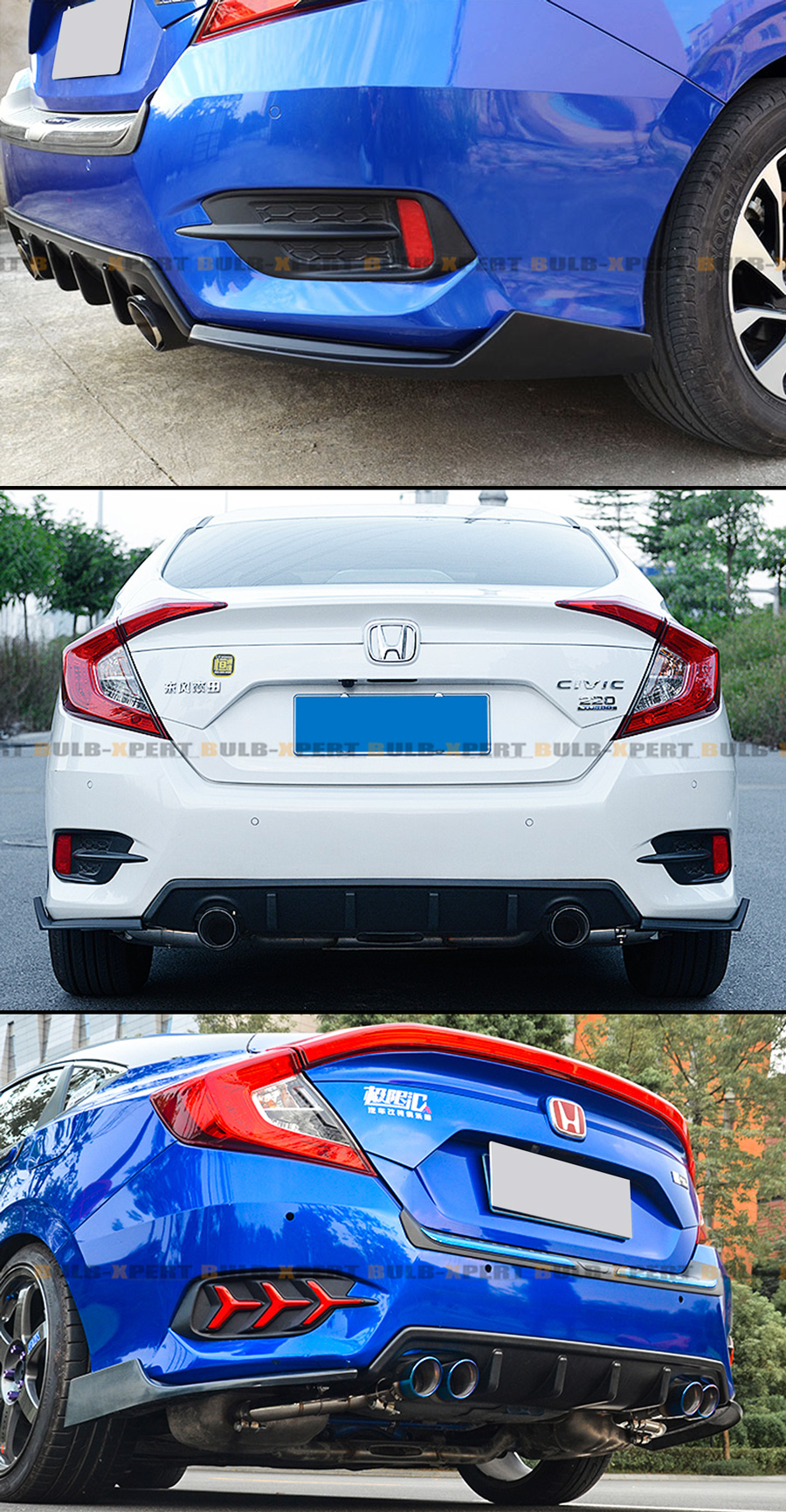 Show ImageRear Bumper Diffuser Jdm Racing Dual Exhaust Tip For Honda Civic 2016 2017 2018 Ebay